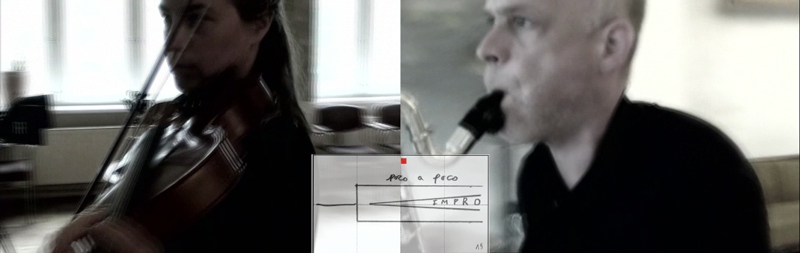 3: Detuned, 4-line staff Clarinet, Viola and 2-channel video